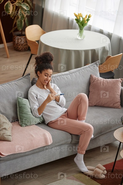 Счастливая девушка проводит тест на беременность дома