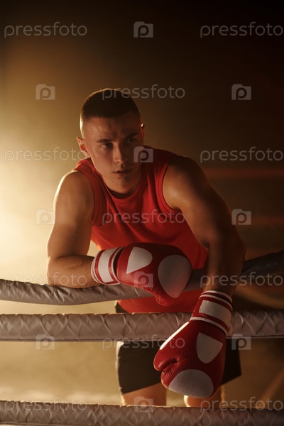 Молодой боксер с перерывом между раундами
