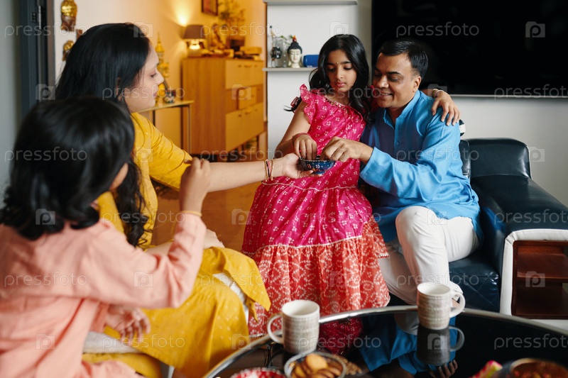 Семья ест десерты с детьми дома