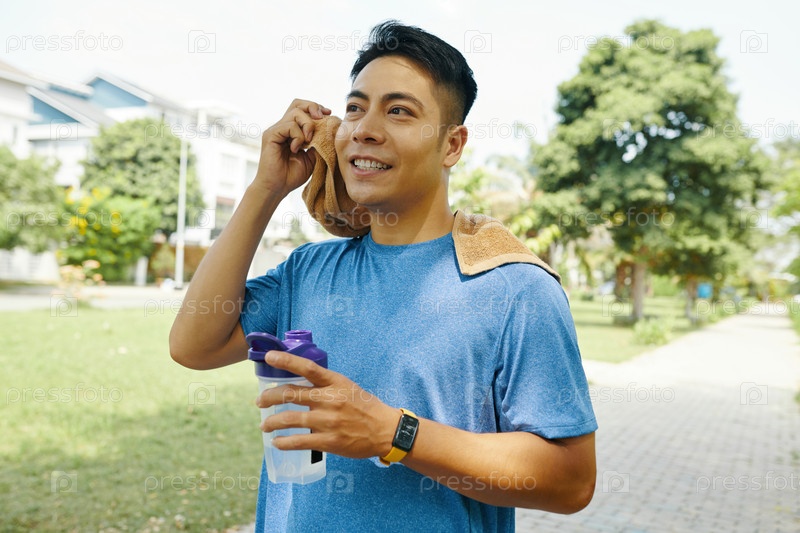 Мужчина вытирает пот после интенсивной тренировки