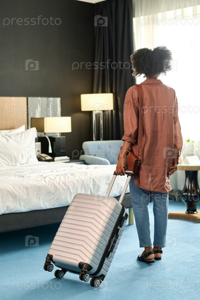 Девушка с чемоданом прибывает на курорт
