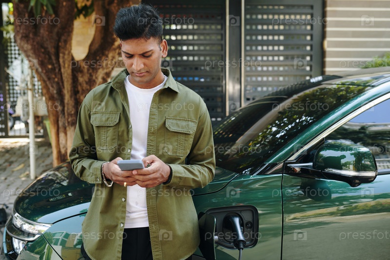 Владелец автомобиля устанавливает приложение для зарядки