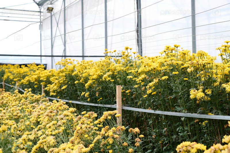 Желтые цветы расцветают в теплице