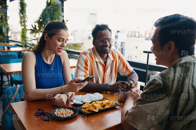 Встреча друзей в группе кафе
