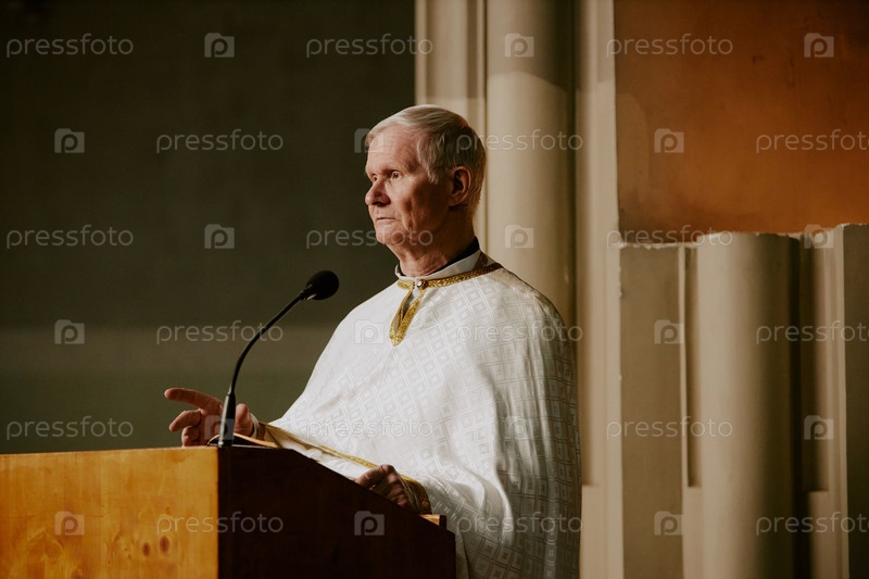 Старший пастор выступает во время церковной службы