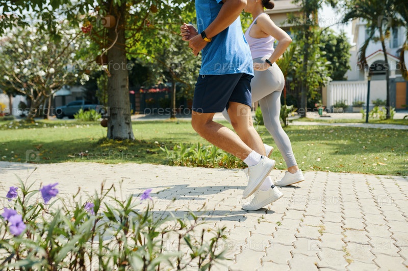 Пара, бегущая вместе в парке
