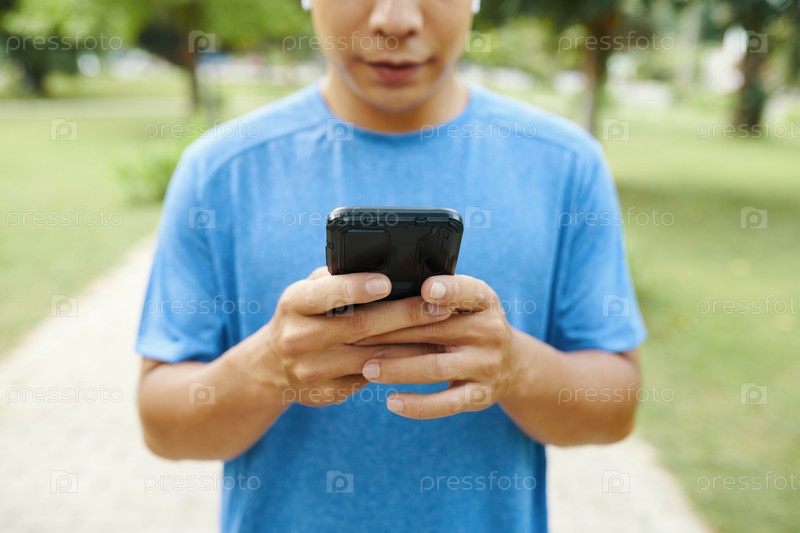 Человек, проверяющий смартфон во время нахождения на улице