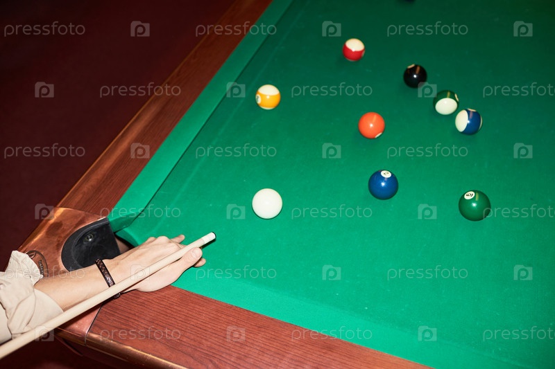 Руки, держащие ключевую палку и играющие в бильярд Мужчина