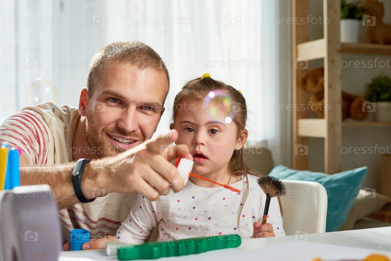 Девочка с синдромом Дауна развлекается со своим отцом