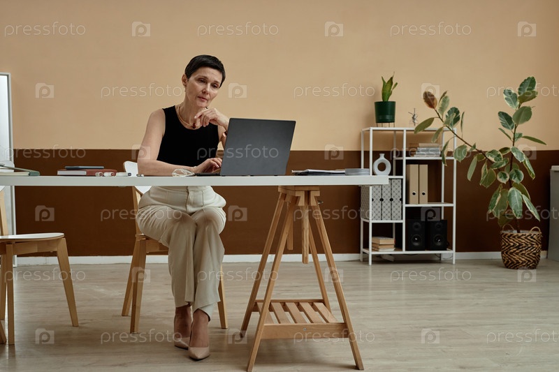 Элегантная зрелая женщина, использующая компьютер в офисе