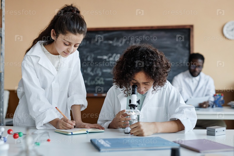 Мальчик и девочка во время урока химии