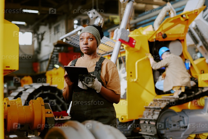 Афроамериканская женщина, работающая на производстве машин