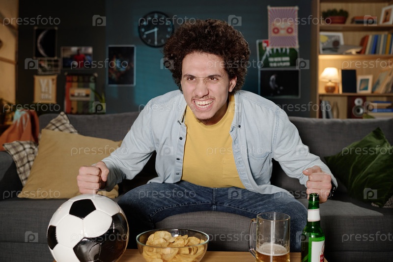 Молодой человек смотрит футбол Livestream