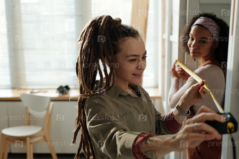 Дизайнер интерьера измеряет дверной проем