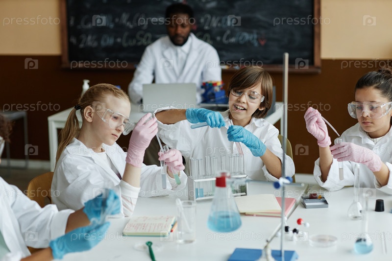 Дети проводят эксперименты на уроке современной химии