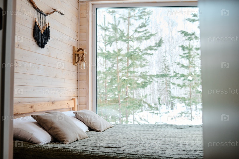 Спальня в деревянном коттедже