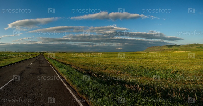 Россия. Юг Западной Сибири. Республика Хакасия. Живописные горизонты бескрайних степей вдоль шоссе между селами Доля и Ужур