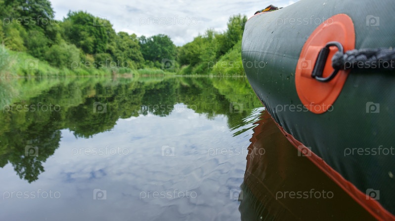 Надувной каяк на воде. Надувная доска для каяка крупным планом