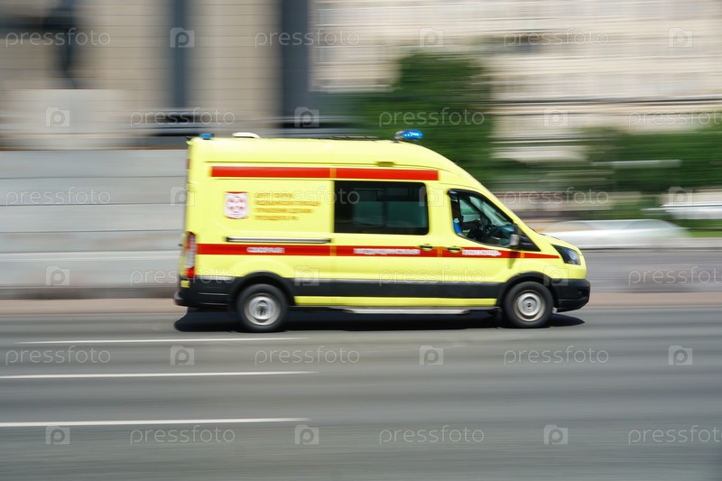 Карета скорой помощи проезжает по Кутузовскому проспекту.3 июля 2024.Москва, Россия