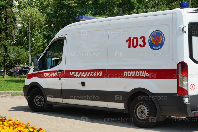 Карета скорой помощи приехала на вызов на Кутузовском проспекте.3 июля 2024.Москва, Россия