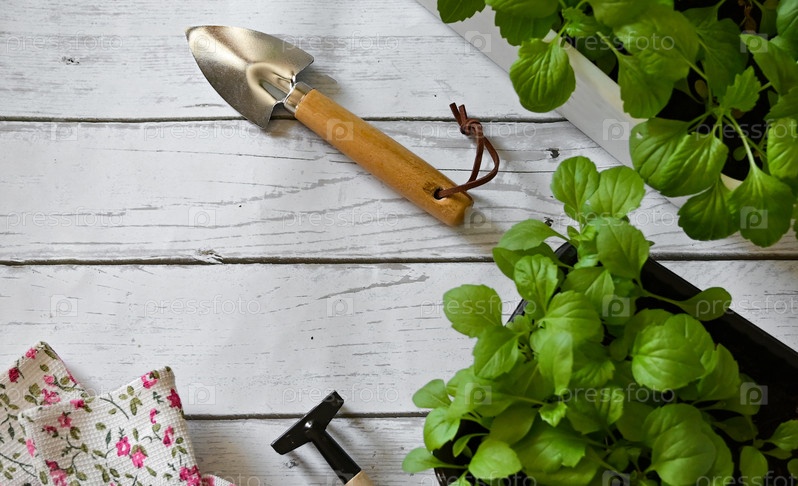 Женщина в садовых перчатках пересаживает цветок в горшок за деревянным столом, крупным планом