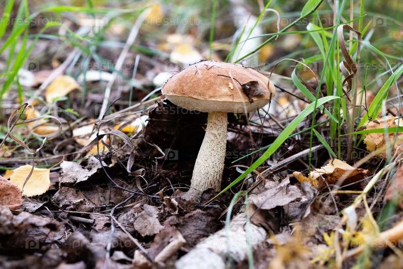 Гриб Cep или Boletus, растущий на пышно-зеленой мхе в лесу, вид под низким углом