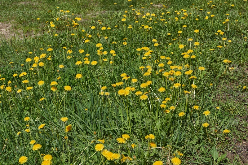 Одуванчики цветут на лужайке в саду в теплый весенний солнечный день. Весна
