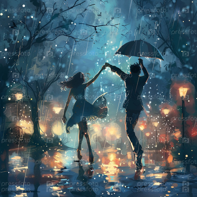 Свадебная пара танцует под дождем
