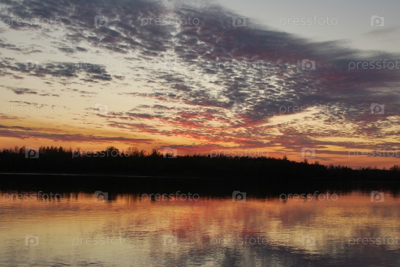 Перелетные птицы осенним вечером над рекой Иртыш