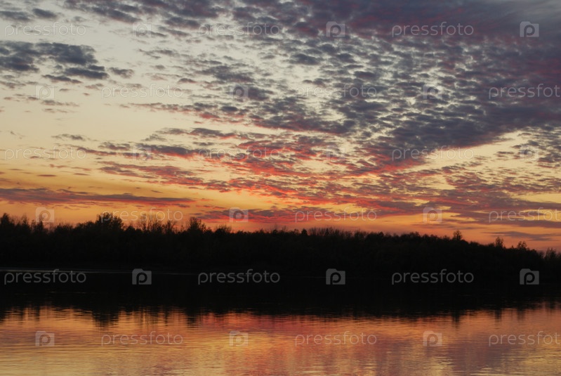 Перелетные птицы осенним вечером над рекой Иртыш
