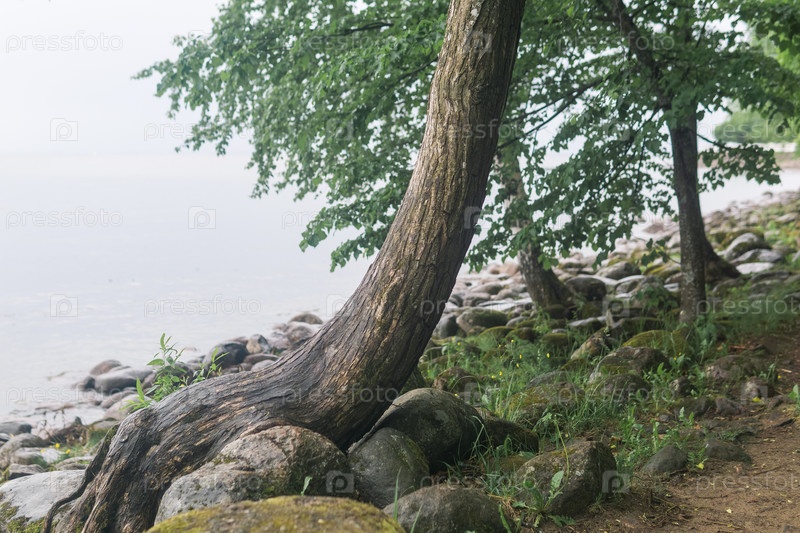 Деревья на лесистом морском побережье в пасмурную погоду