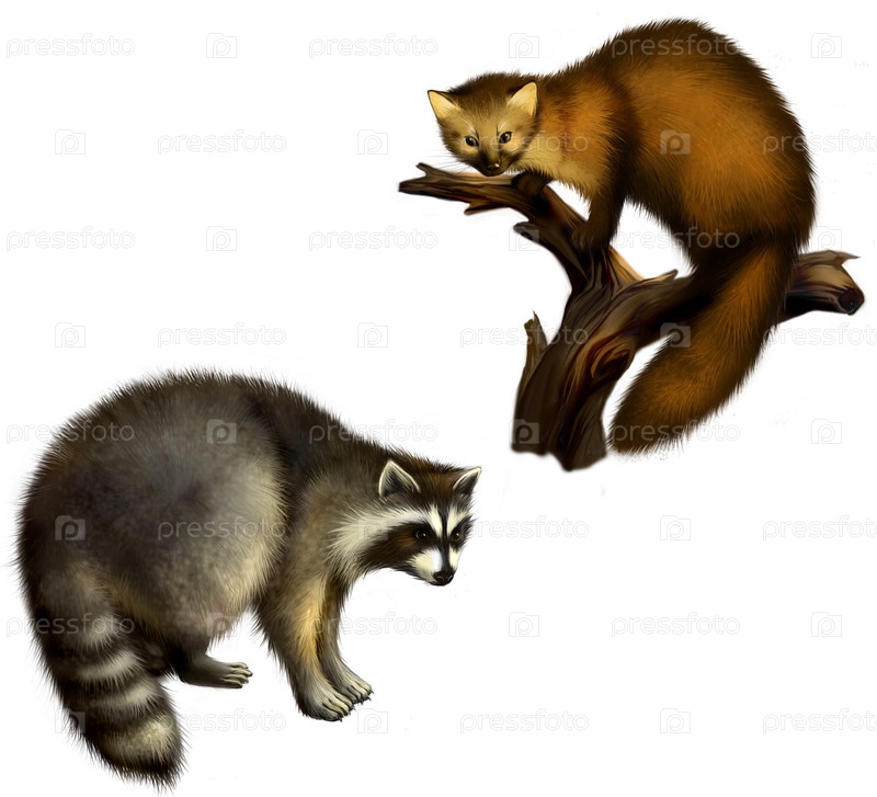 Куница и енот