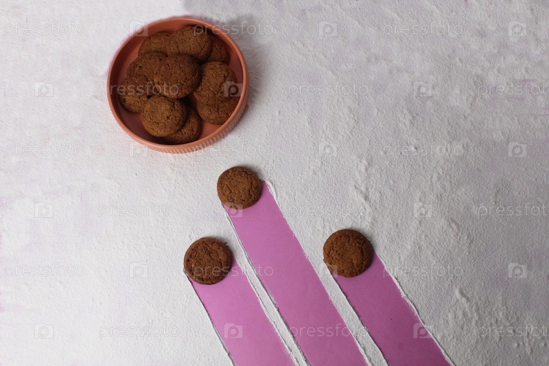 Понятие оплодотворения яйцеклетки спермой. Три печенья нацелены на тарелку овсяного мультизернового печенья