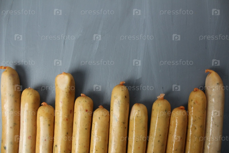 Колбаски из альтернативного мяса. Фон колбасы для кафе производства завода