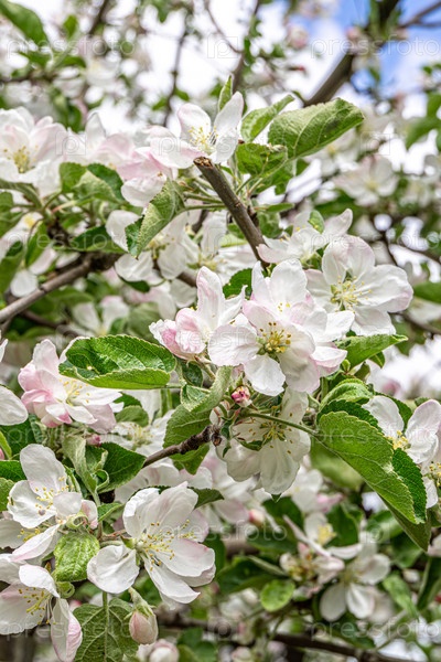 Мягкие розовые яблоневые цветы на ветвях