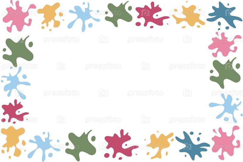 Фон красочных брызг. Яркие пятна, краска, набор элементов дизайна. Красочный набор брызг краски. Круглая плоская коллекция брызг, плавных декоративных форм. Различные брызги и капли