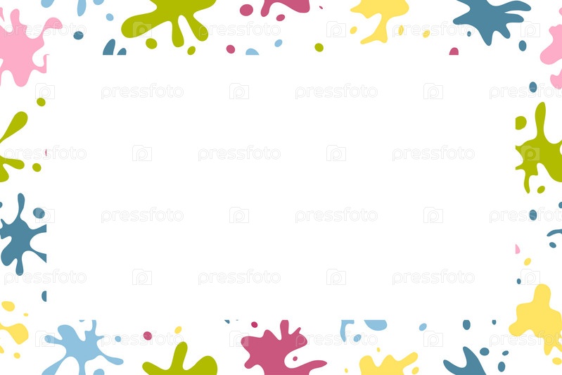 Фон красочных брызг. Яркие пятна, краска, набор элементов дизайна. Красочный набор брызг краски. Круглая плоская коллекция брызг, плавных декоративных форм. Различные брызги и капли