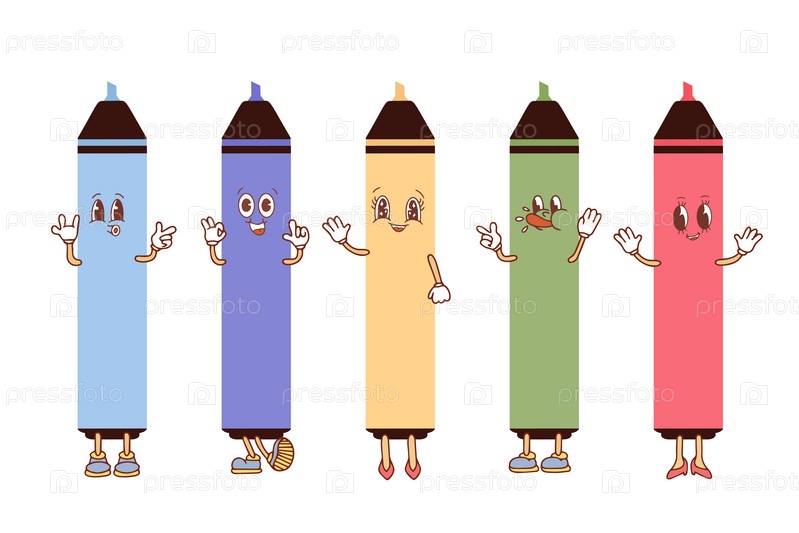 Набор красочных маркеров с забавными смайликами. Маркеры в стиле каваи. Векторная иллюстрация изолирована на белом фоне