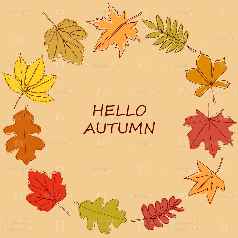 Баннер из осенних листьев с надписью «Привет, осень». Векторная иллюстрация яркого красочного осеннего фона. Вектор