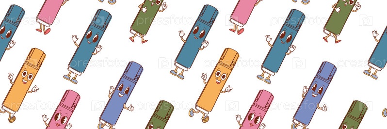 Бесшовный узор из красочных маркеров в стиле каваи. Векторная иллюстрация изолирована на белом фоне