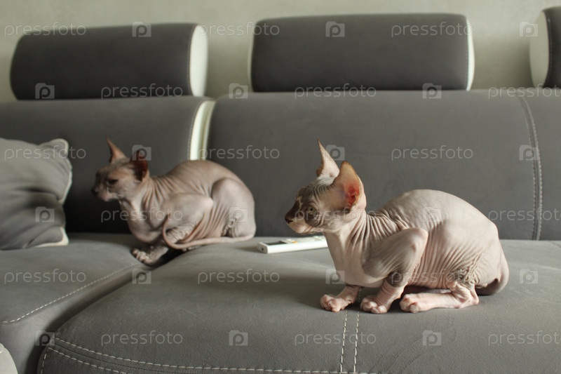 Злой кот на сером фоне дивана крупным планом. Понятие о домашних животных