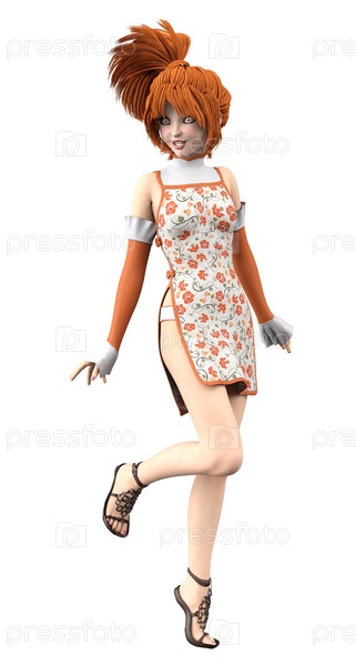 3D-рендеринг аниме - девочки с оранжевыми волосами