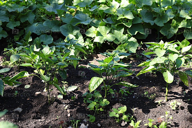 Выращивание перца в деревне в центральной России. Над грядкой расставляют арки и высаживают туда рассаду, накрывая на ночь пленкой. Концепция экопродуктов, натуральных продуктов питания без ГМО, сельского образа жизни