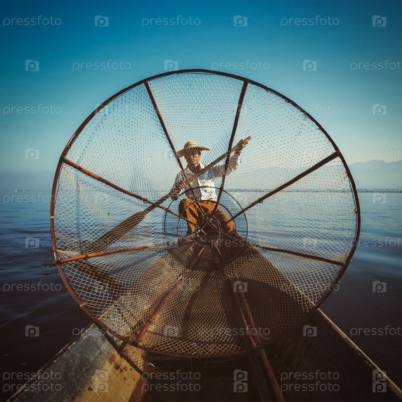 Традиционный бирманский рыбак на озере Инле, Мьянма