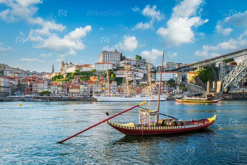 Вид на город Порту через реку Дору. Порту, Вила-Нова-де-Гайя, Португалия