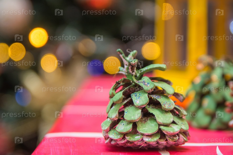 Рождественское украшение, сосновая шишка, окрашенная в зеленый цвет, как рождественская елка