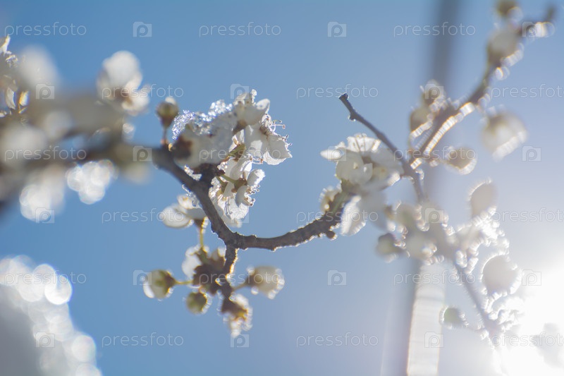 Весенние заморозки, цветение абрикоса и вишни, перемерженные под снегом