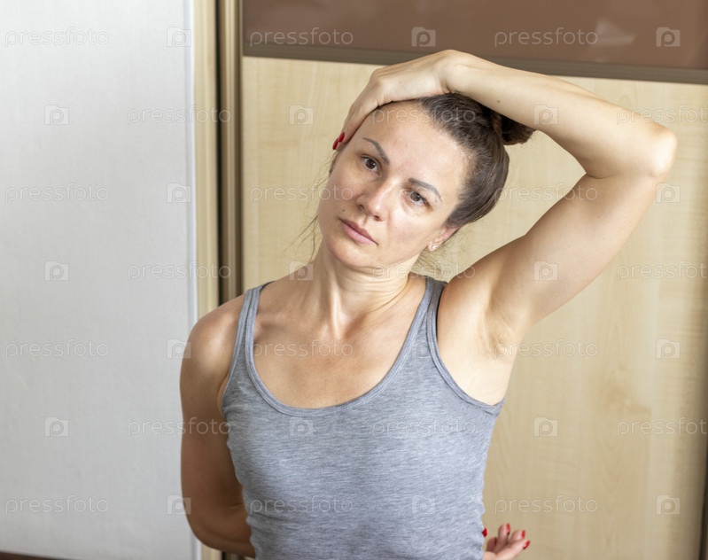 Снимок женщины, выполняющей различные упражнения на растяжку и физические упражнения, лежащей на коврике для йоги на полу. Стиль жизни