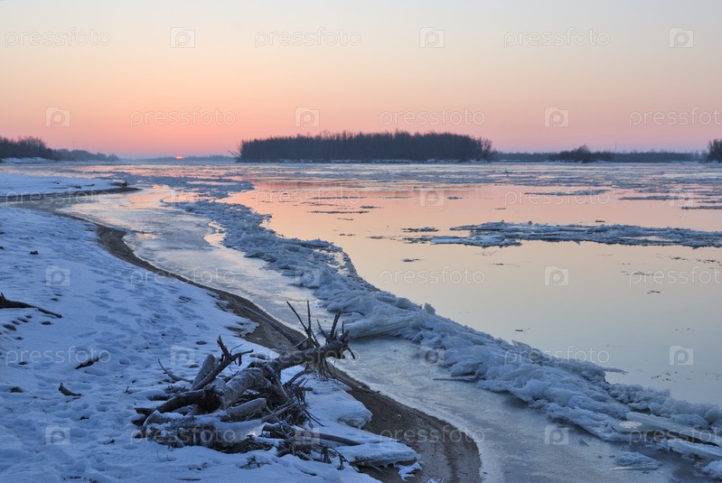 Вечер на реке Иртыш, Омская область, Сибирь, Россия