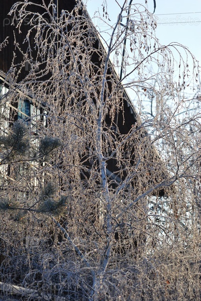Деревья покрытые инеем в первых лучах солнца
